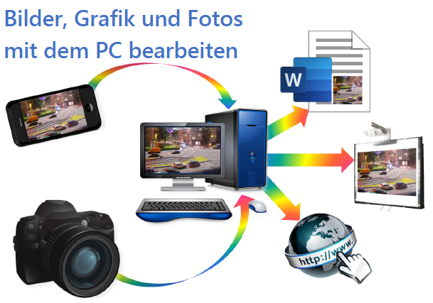 Weiterhin ist fraglich, inwieweit die internen Grafikbearbeitungsmöglichkeiten der Office-Programme wirklich hilfreich sind. Häufig ist eine externe Vorbereitung der Illustrationen sinnvoller. Für nur gelegentliche Bildbearbeitung bedarf es keiner hochwertigen und kompliziert zu bedienenden Bildbearbeitungsprogramme; einige Freeware-Tools wie IrfanView, XN-View oder Bimp erfüllen diesen Zweck für den Hausgebrauch völlig.